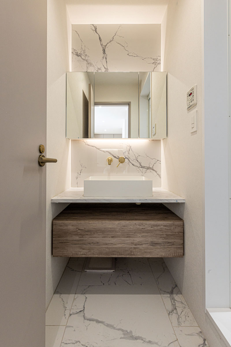 洗面所・浴室には大判のタイルを使用して高級感を演出、毎日のリラックスタイムをホテルライクな上質な時間へと変化させます。