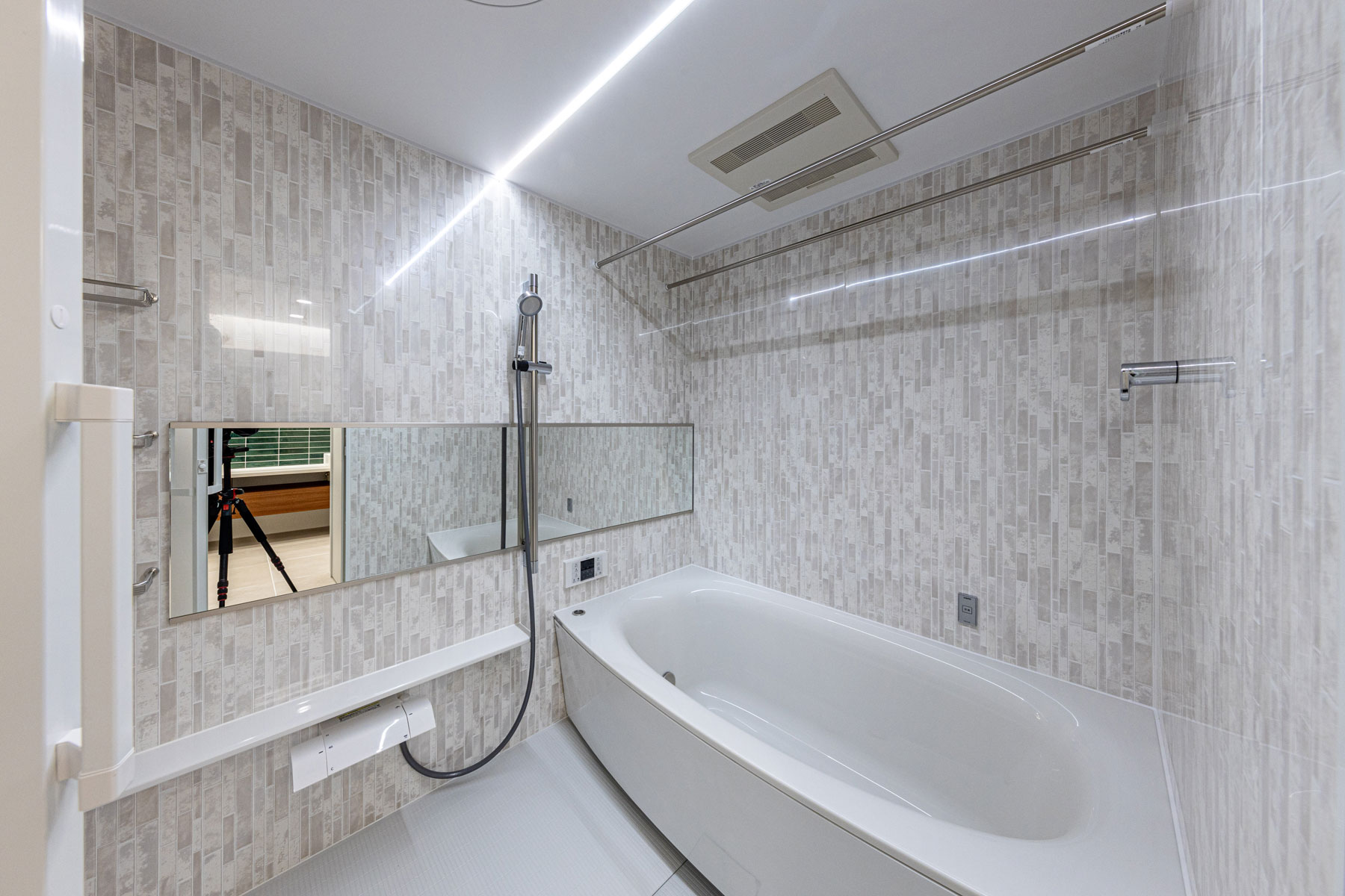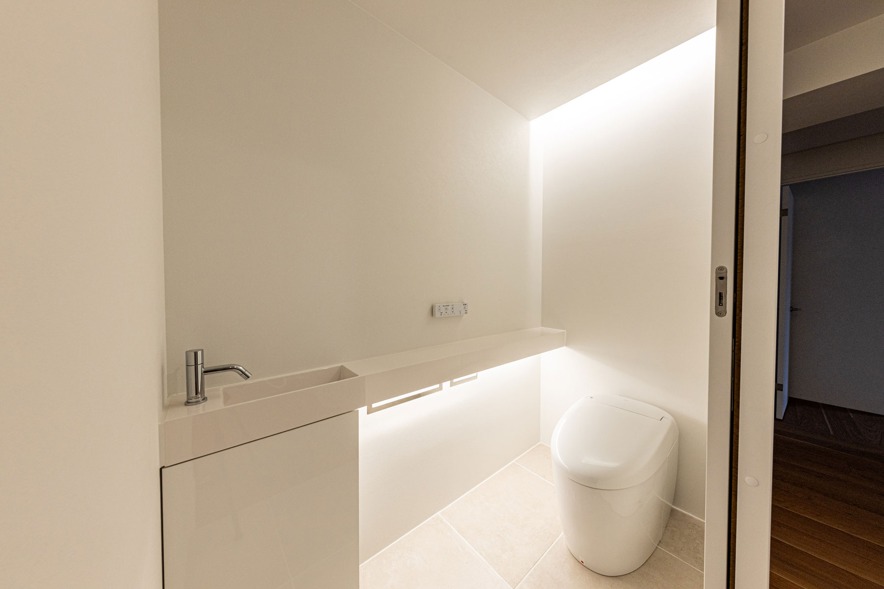 水回りもそれぞれこだわりがあり、特に独立洗面台は白を基調とし、タイルをアクセント施工。