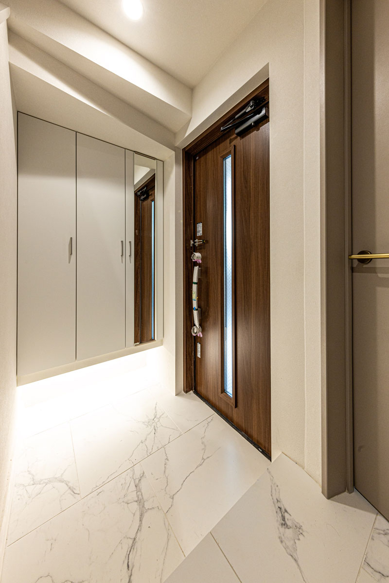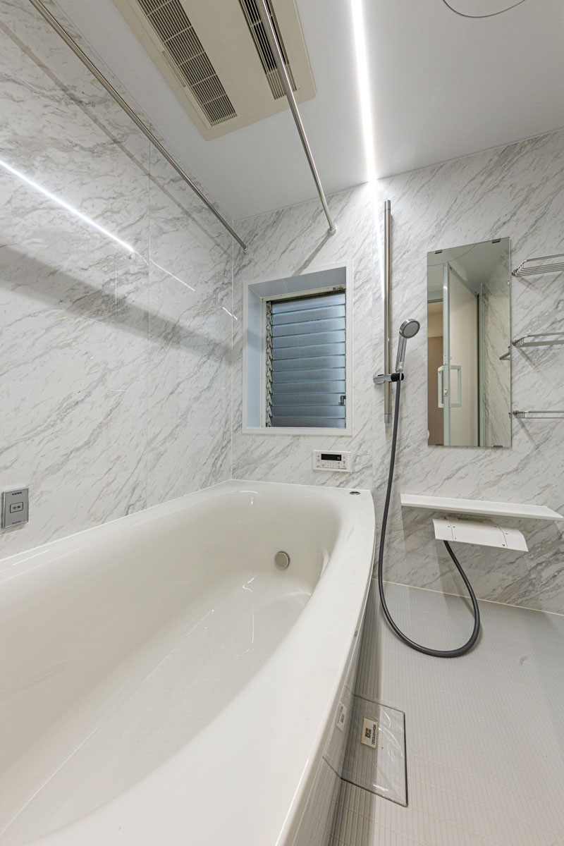 洗面所・浴室には大判のタイルを使用して高級感を演出、毎日のリラックスタイムをホテルライクな上質な時間へと変化させます。