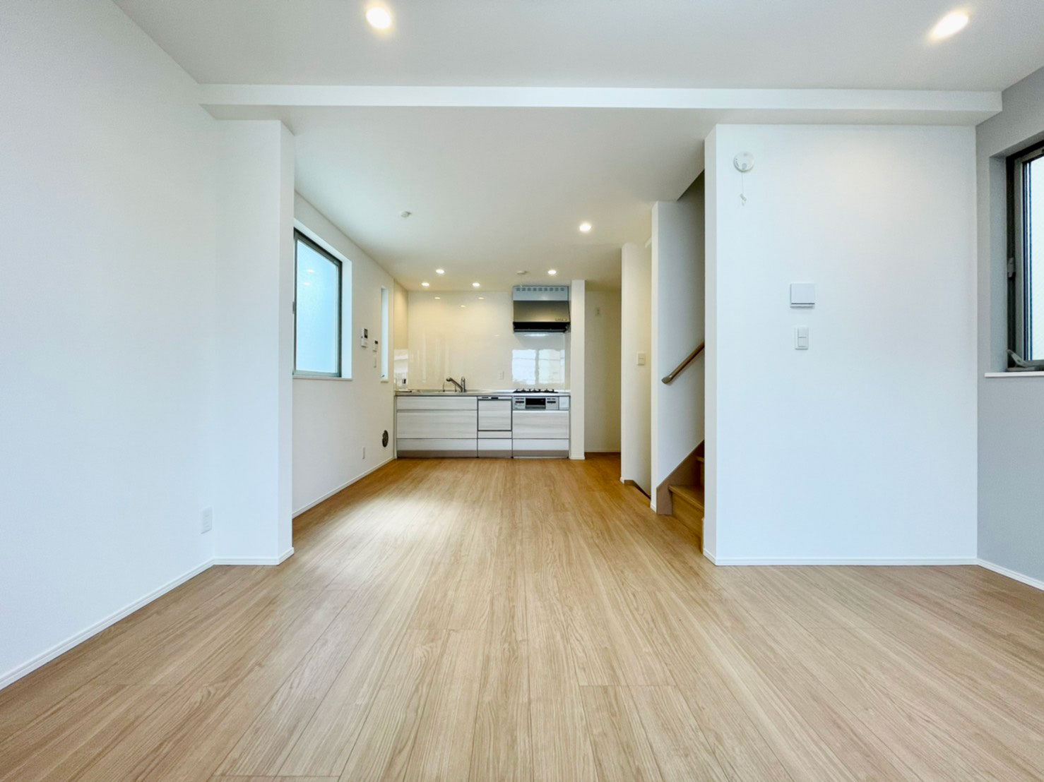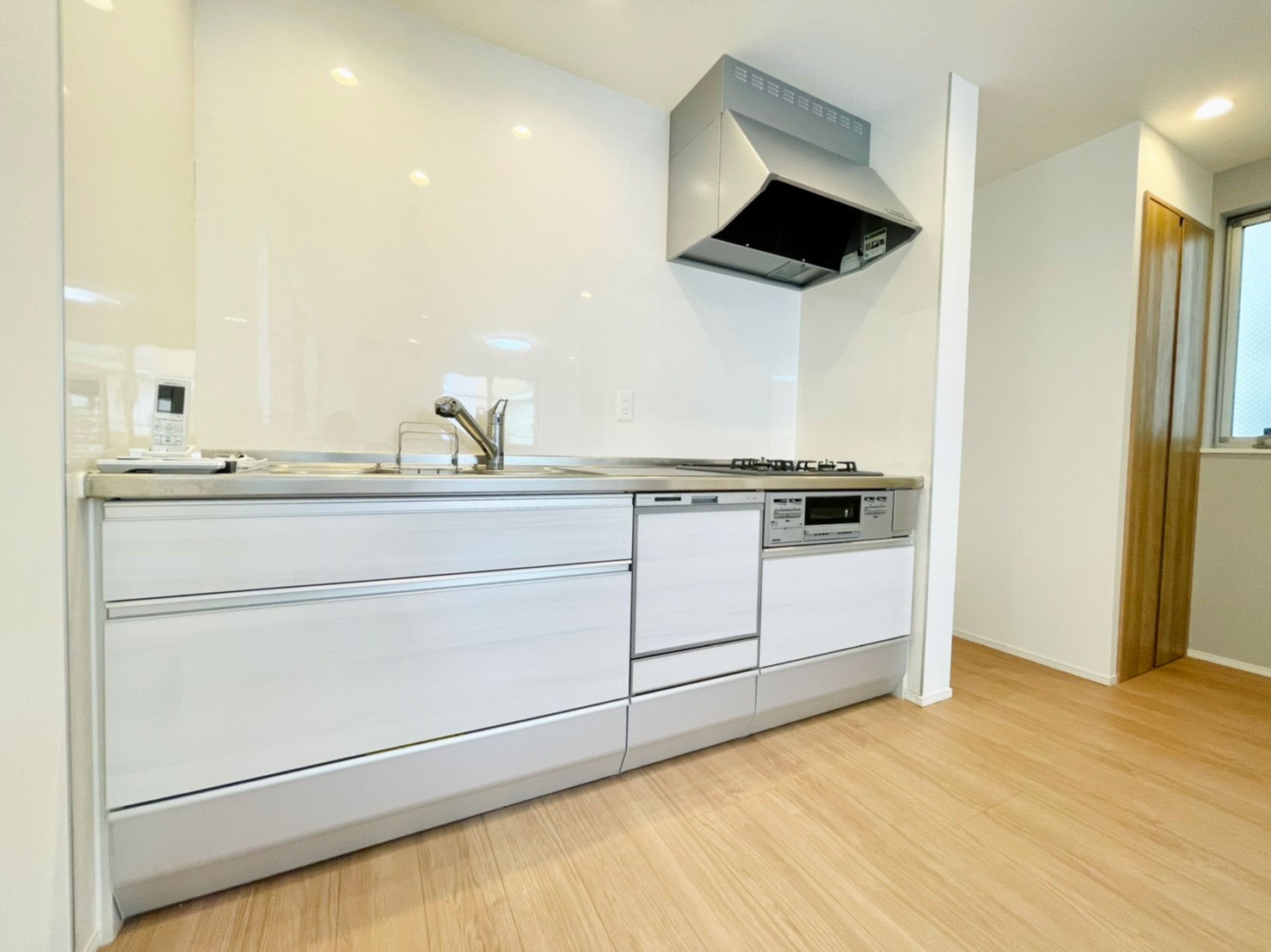 白を基調とした内装と明るい木目調のフローリングが、お部屋全体を広々と見せてくれます。