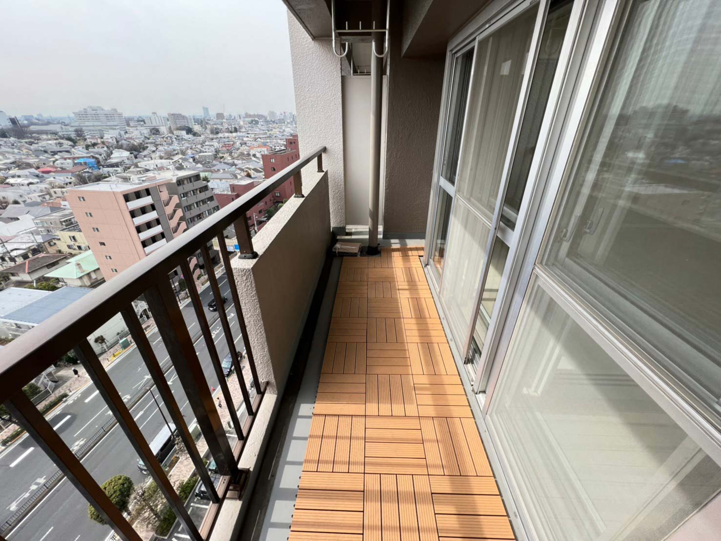 広々としたバルコニーにはウッドパネルを敷き、景色を楽しみながらリラックスできる空間を創出しています。