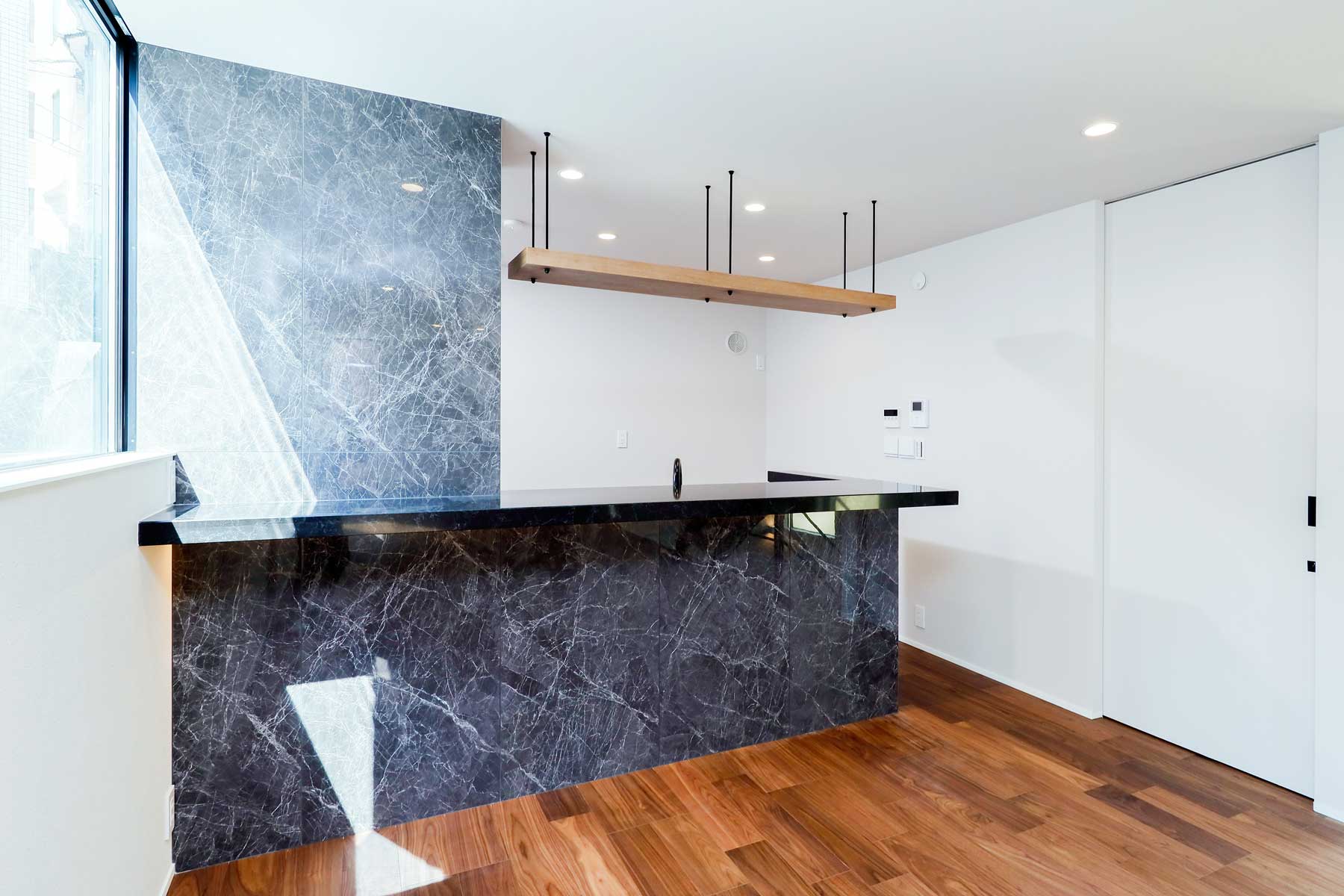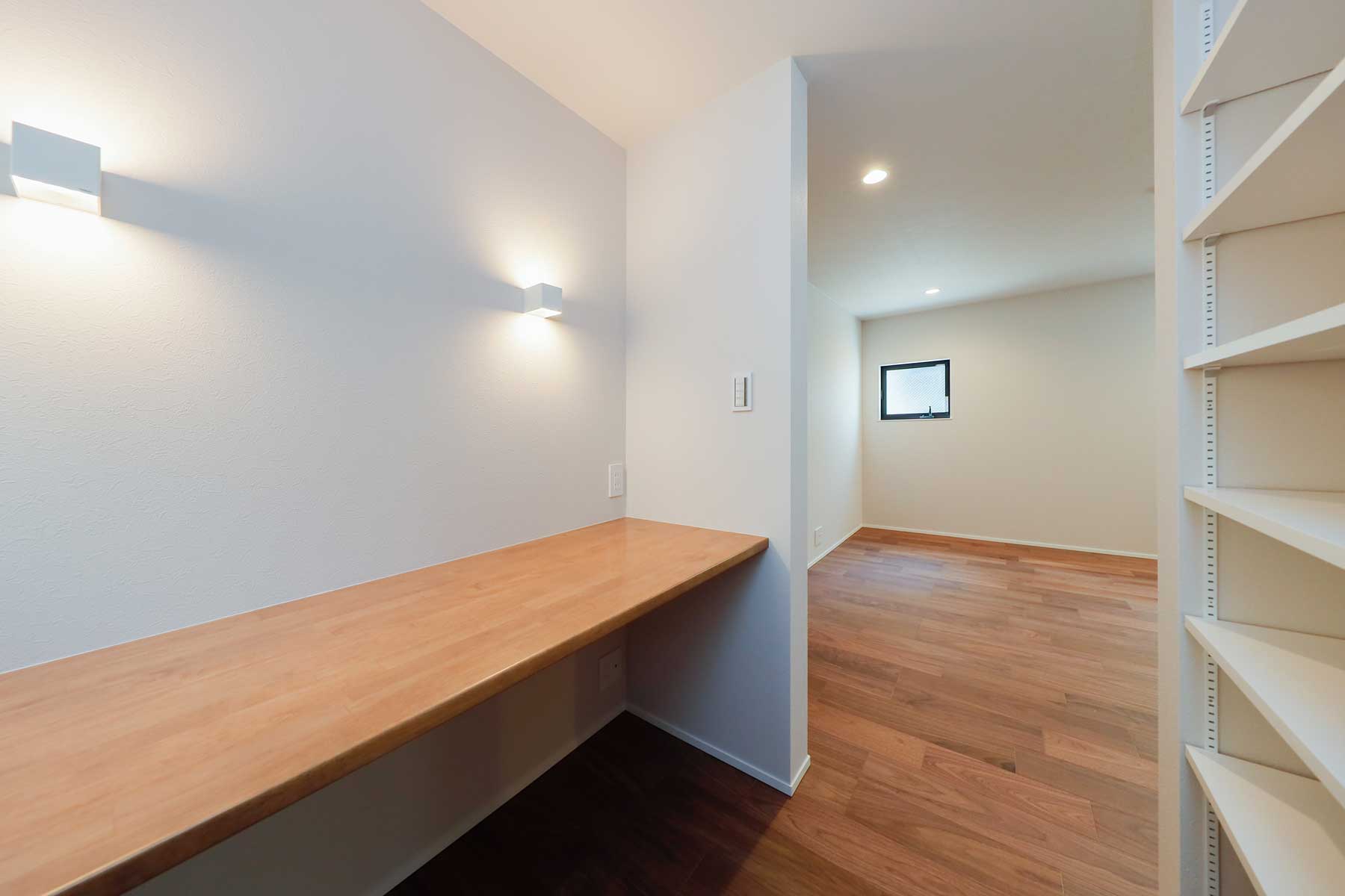 ビルトインガレージの上部には、弊社の建売ならではの独自デザインによる間接照明を配置。スタイリッシュな印象とともに、暮らしの質を高める空間づくりが施されています。